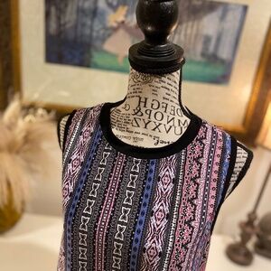 Light and airy, soft blue, pink, white, and black. Tank top. Size Medium by AB Studio