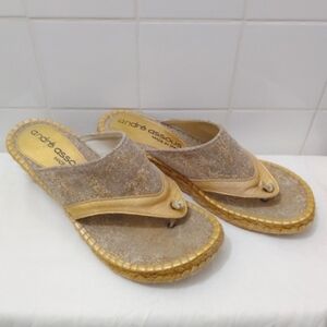 Andre Assous Annette Espadrilles Thong Wedge Sandals Bronze Toast US 10.5 EU 41 Made in Spain