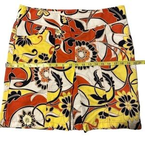 Ann Taylor retro print yellow red linen blend skirt size 8