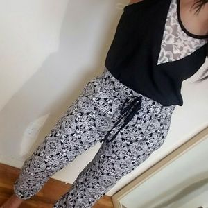 Love! Black with cream lace inset cami top. Lace in the back, racerback style. Flowy chiffon material. P ______________________________________ •SIZES AVAILABLE: SMALL •MODELING SIZE MEDIUM •I.G.: @_jenniferivette_ 🌿🌿PRICE FIRM UNLESS BUNDLED 🌿🌿