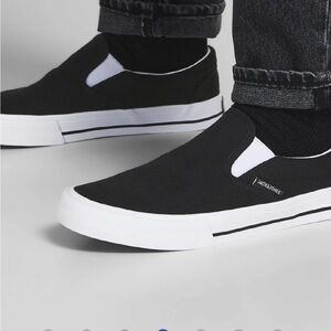CLEARANCE BUCKLE JACK & JONES BLACK CANVAS SLIP ON LOAFERS SNEAKERS size 8 NWT