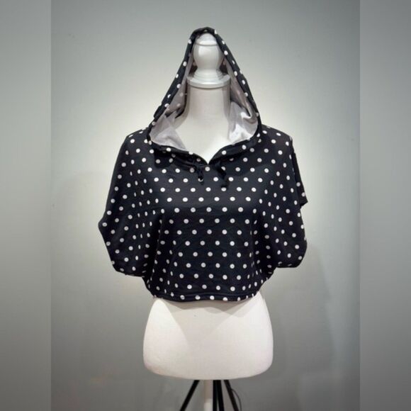 CLEARANCE! B/W Boutique Polka Dot Wide Cut Hooded Top Size M NWT