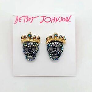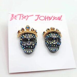 CLEARANCE Betsey Johnson Crystal Skull Crown Halloween Studs