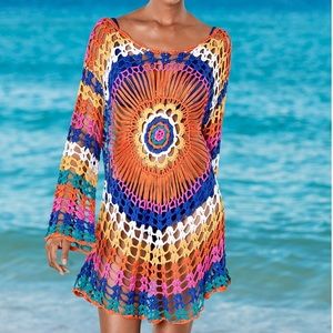 CLEARANCE Bright Boho Multi Color Crochet Coverup Tunic
