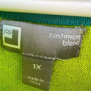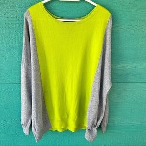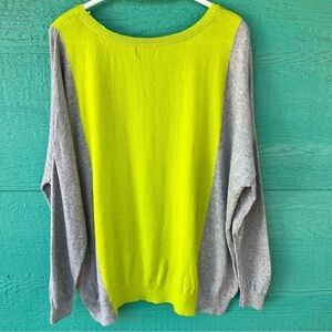 CLEARANCE CASHMERE COLORBLOCK PULLOVER SWEATER GRAY CHARTREUSE GREEN LARGE EUC