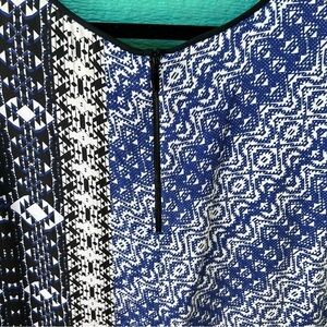 CLEARANCE CLASSIQUES ENTIER SILK TANK TOP BLOUSE BLUE CREAM AZTEC PRINT XL EUC