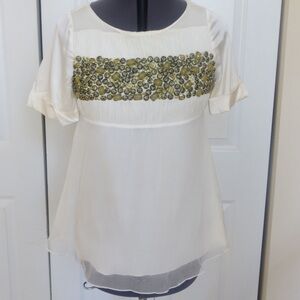🔴CLEARANCE🔴 Cream Silk Beaded Top