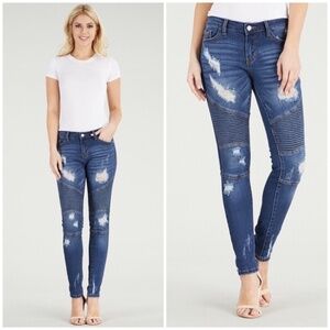 CLEARANCE Destroyed Moto Skinny Jeans Ripped Stretch