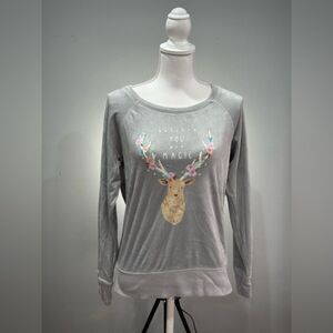 CLEARANCE! Gray Muk Luks Graphic Velour Sweatshirt/Sleepshirt Size S EUC