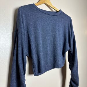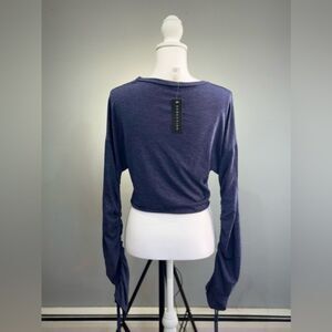CLEARANCE! Gray-Blue Boutique Drawstring Sleeve Crop Top Size S NWT