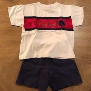 Matching vintage (early 2000s) 100% cotton shirt and shorts set by Healthtex. In VGUC, with slight wash fade to the shorts at blue stripes on the shirt due to the cotton fabric. Worn a handful of times by my son. Very gently worn, and washed in gentle detergent on delicate cycle. No stains, tears, or flaws. Purchased new. Very soft and comfy!