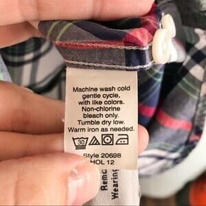 Wonderful men's J. Crew men's button-down shirt in tartan plaid pattern! It is made of 100% cotton and machine washable. Generally great condition. There was a badly placed tag on the underside of the collar so there is a very tiny hole, but it is covered by the collar. See pictures for details and measurements. Size is men's medium.