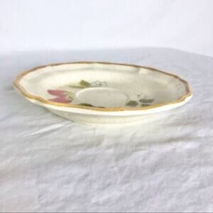 Very nice vintage Mikasa saucer in Strawberry Festival pattern! It is in excellent used condition. See pictures for details and measurements. Great to replace or complete a set. Measures 6-6.25" in diameter.
