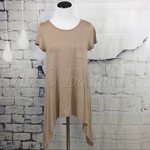 New with tags. Mocha shark bite hem tunic. 🌸94% rayon, 6% spandex. 🌸Made in USA. ❌SORRY, NO TRADES.