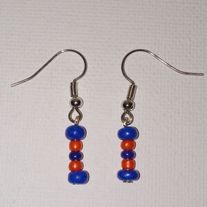 Orange and blue small bar beaded earrings with silver plated metal and hypoallergenic metal and ear wires