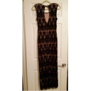 Women’s preowned Rachel & Chloe black lace with beige lining dress, 3/4 Long not maxi in perfect condition worn a couple of times