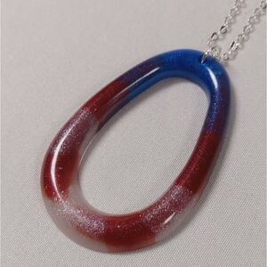 CLEARANCE Red white blue resin oval necklace with silver toned 13 inch chain
