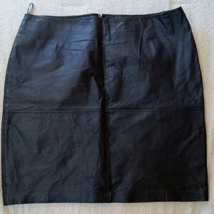 Chic black leather mini skirt. Sleek and versatile design. Every girl needs a classic leather mini or pencil skirt. Gorgeous soft leather skirt, fully lined in size 18. Back zipper closure in perfect condition. Measurements are in pictures. Excellent like new condition. Please message me if you need more specific measurements regarding sizing. Happy to make sure your happy with the fit.