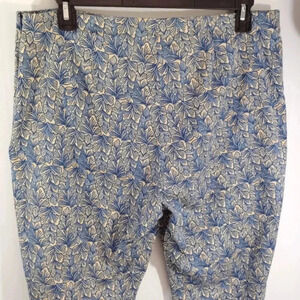 Sz 16 Sigrid Olsen Pants Trousers Wide Leg Smooth Front Side Zip Cotton with Stretch. Gorgeous botanical print in blue and beige. Side closure with zipper and button. Slightly flared at bottoms. Garment in pre-owned condition without holes or stains. No pockets. Please see pictures and video. From our smoke-free home 🏡