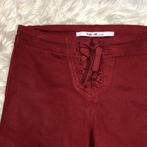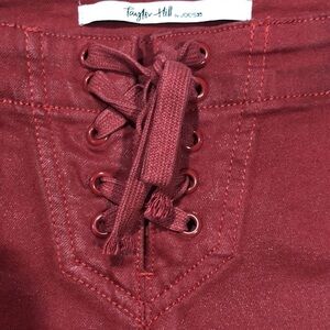 Taylor Hill by Joe's Jeans red coated mid rise lace up skinny jeans Sz 24. These jeans are in great used condition