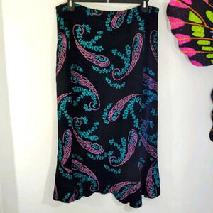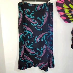CLEARANCE Vintage Notations Skirt Paisley Print Pink Aqua Ruffle Hem Stretchy XL