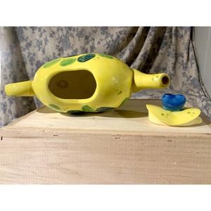*CLEARANCE* Vintage Yellow Blue Green Heart Shaped Teapot