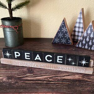 CLEARANCE!Wooden Ledgie Kit - PEACE / 12"x2.5"x1" / Black and White / Christmas
