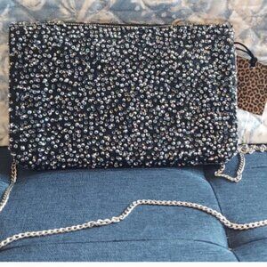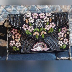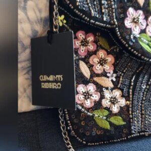 CLEMENTS RIBEIRO BEADED BLACK Flower Sequence Crossbody
