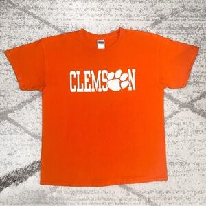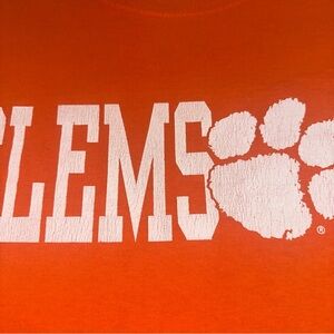100% cotton Clemson t-shirt. Letters are slightly cracked as seen in pictures, but no other signs of wear