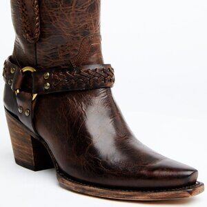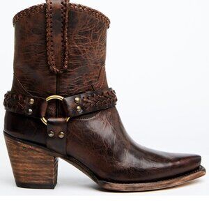 CLEO + WOLF WOMEN'S WESTERN COWGIRL ANKLE BOOT SNIP TOE LEATHER DISTRESSED BROWN