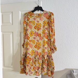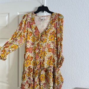 Chic mini dress with vibrant floral pattern. Features a flattering V-neck and stylish puff sleeves.