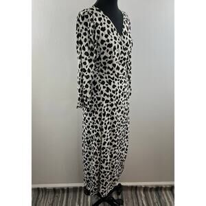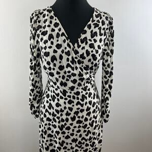 CLEOBELLA Anthropologie Black White Animal Printed Long Sleeve Wrap Midi Dress S