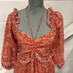 CLEOBELLA Celia Midi Organic Cotton Dress Fan Block Print Woman’s Size M NEW NWT