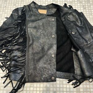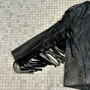 CLEOBELLA Everly Metallic Leather Fringe Metallic Black Jacket