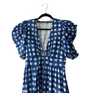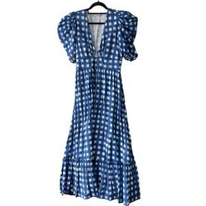 CLEOBELLA Morina Ankle Maxi Dress in Painterly Gingham Blue Medium