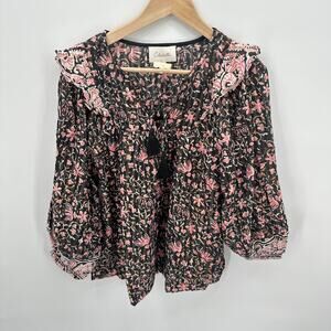 CLEOBELLA NWT Evereve Brynlee Black Pink Org Cotton Metallic Print Blouse // XL