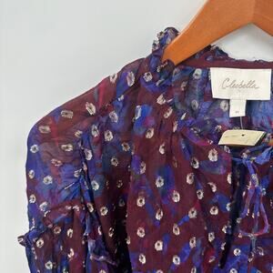 CLEOBELLA NWT Evereve Metallic Shimmer Dot Puff Sleeve Dara Blouse // M