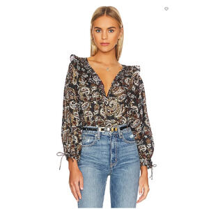 CLEOBELLA NWT Jillian Brown Black Paisley Print Organic Cotton Blouse // M