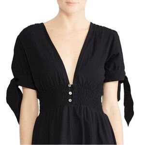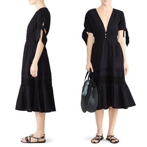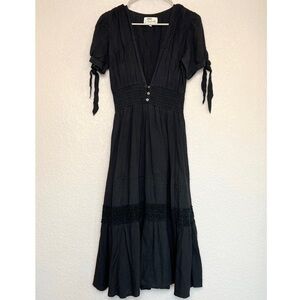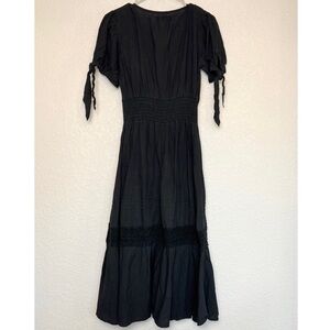 CLEOBELLA Puff Short Sleeve Smocked Waist Tiered Crochet Lace Ruffle Hem Dress M