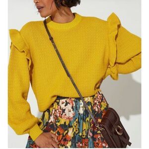 CLEOBELLA Yara Sweater Flutter Sleeve Knit Sweater Citron Yellow Size Small