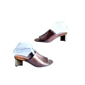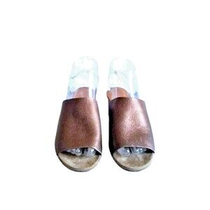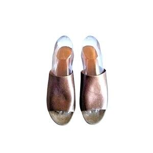 CLERGERIE Paris Bronze Leather Mule Sandals Sz 7 37.5 Suede Metallic Heels