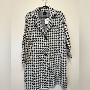 CLICHÉ Edgy Abstract Print wool blend coatigan In Black/ivory size M