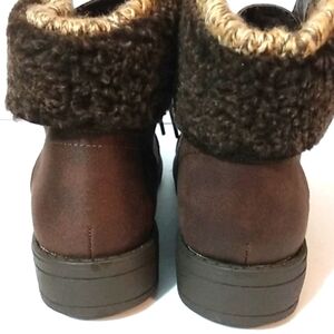 CLIFFS BY WHITE MOUNTAIN Chocolate Brown Lace Up Fur Trimmed Moto Boots Ankle Boots Size 6 NWOT