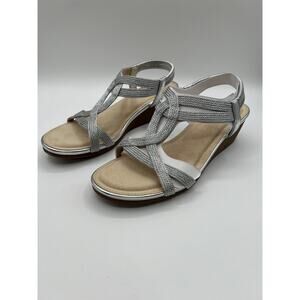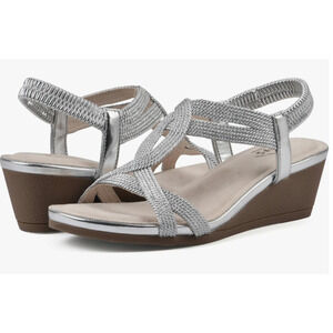CLIFFS BY WHITE MOUNTAIN WOMENS CANDELLE SILVER STRAPPY WEDGE DRESS SANDAL 9M