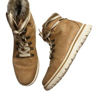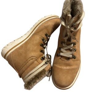 Step out in style with these cozy tan ankle boots. Featuring a plush fur lining, they offer both warmth and comfort. Perfect for any casual outing.