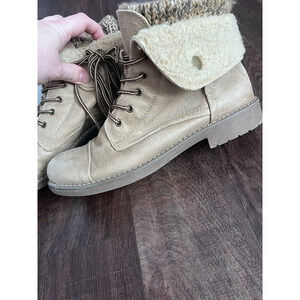 CLIFFS Womens Boots Brown Lace Suede 8.5 Outdoor Minimalist Tan Knit Ankle
