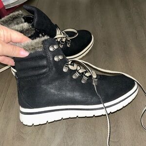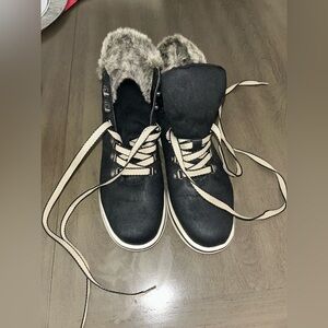 CLIFFS by WHITE MOUNTAIN Women's Black Fabric Hallett Lace-Up Snow Boot