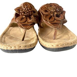 CLIFFS by White Mountain "Carnation" Leather Flower Flip Flop Brown Size 6M