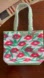 Stylish Clinique tote with vibrant floral design. Features red and green accents. Perfect for everyday use.