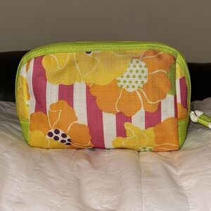 CLINIQUE Mid Sized Green Pink White Orange Purple Floral Make-Up Toiletry Bag